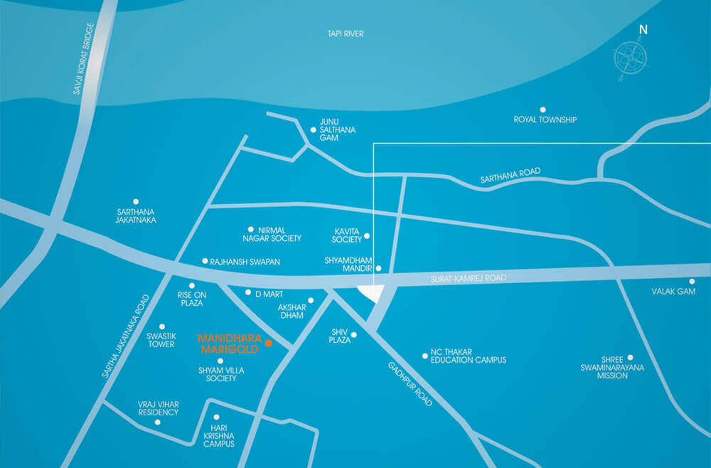 - Sarthana-Kadodara and Kamrej - Middle of Varachha Area